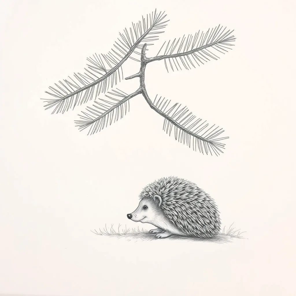 „Déšť je dobrý,“ řekl smrk, „v dešti se celý les může dosyta napít vody. Voda je život. Ale jestli se bojíš, můžeš se schovat pod mými větvemi. Ochráním tě,“ nabídl smrk a ježek rychle zaběhl až ke kmeni smrku a pocítil, jak je pod větvemi smrku klidněji a sucho.
